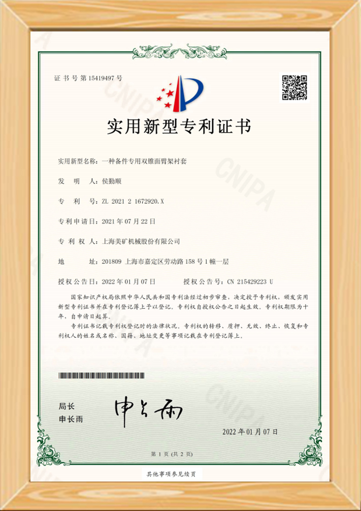 • 一種備件專用雙錐面臂架襯套專利證書